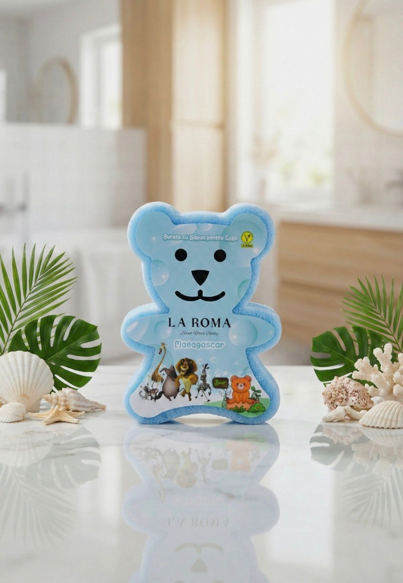 Transformă rutina zilnică de îngrijire într-un moment de răsfăț cu buretele cu săpun LA ROMA, în formă de ursulet. Datorită buretelui natural integrat, produsul curăță delicat pielea, lăsând-o catifelată și parfumată.