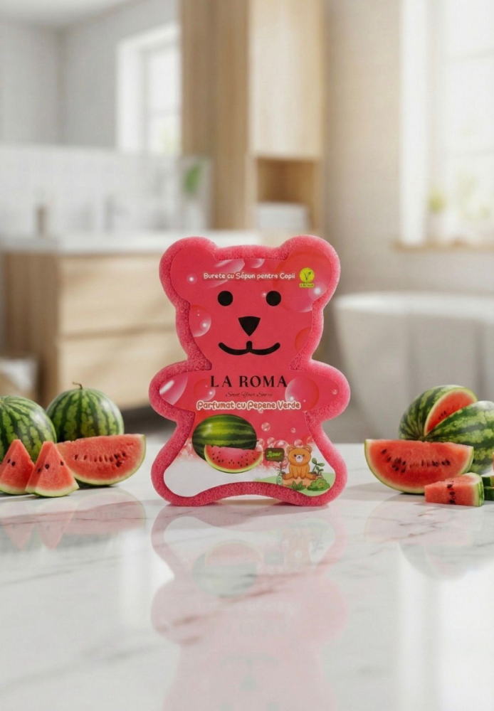 Transformă rutina zilnică de îngrijire într-un moment de răsfăț cu buretele cu săpun LA ROMA, în formă de ursulet. Datorită buretelui natural integrat, produsul curăță delicat pielea, lăsând-o catifelată și parfumată.