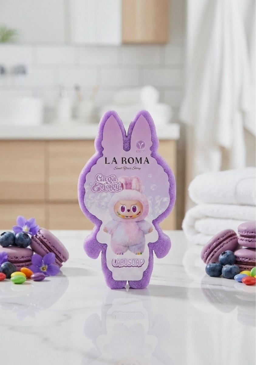Burete cu sapun vegan, 110g, Labubu, Parfumat cu Pudra de Bebelusi, La Roma