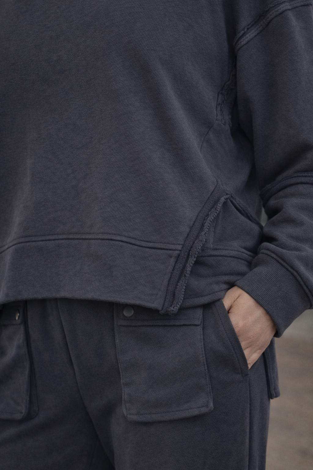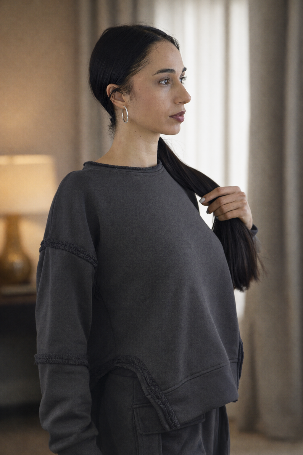 Bluza oversized ofera un aer modern si lejer, asigurand confort sporit si libertate de miscare. Pantalonii cu croi evazat alungesc vizual silueta si adauga un plus de eleganta sportiva, transformand acest set intr-o alegere potrivita atat pentru iesiri casual, cat si pentru outfituri urbane.